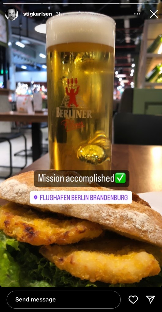 Afterwards, he posted a photo on Instagram of a beer and a schnitzel with the caption “Mission accomplished”.